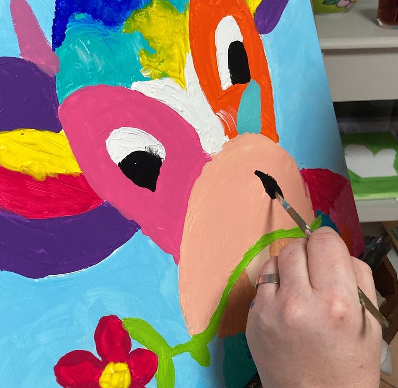 's Ochtends ontvangen we je met een kopje koffie/thee en iets lekkers. Daarna ga je aan de slag op een doek van 50x50 cm.