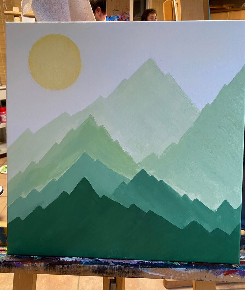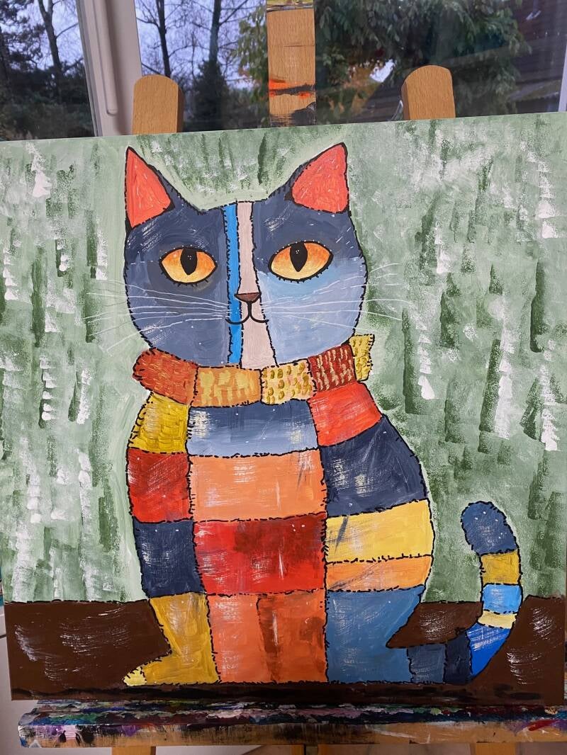 Je werkt op schilderdoek van 40 x 40 cm met kwaliteitsverf.